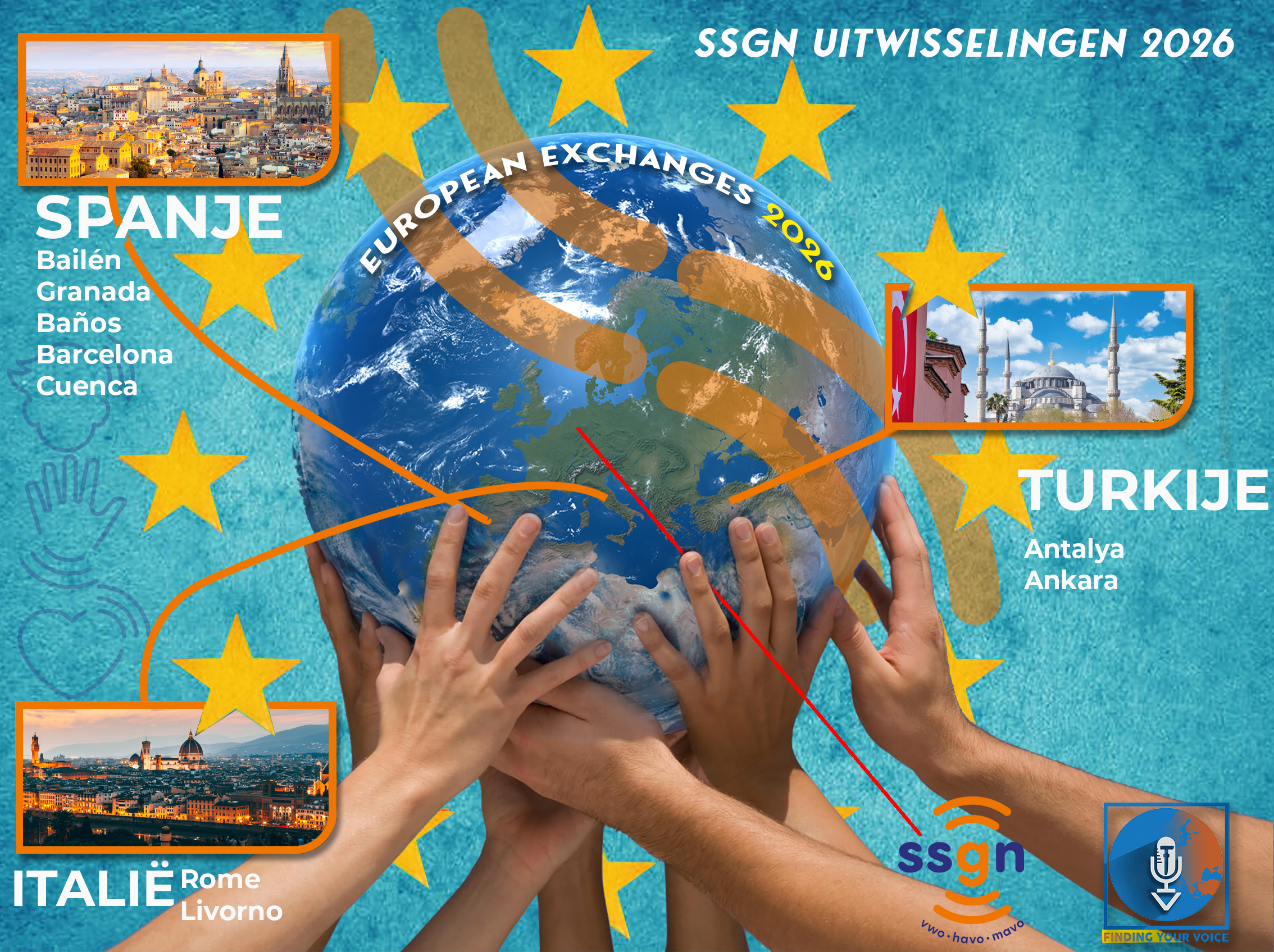 De SSgN wil jou voorbereiden op een plaats in de maatschappij. Deze maatschappij wordt steeds internationaler. Daarom beginnen wij vanaf de brugklas met projecten over Europa.